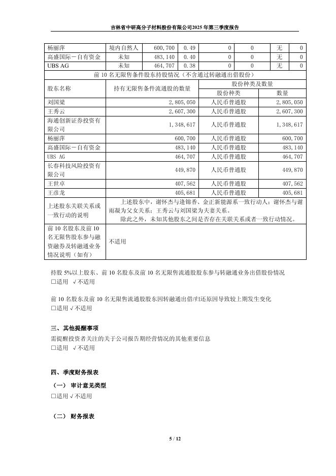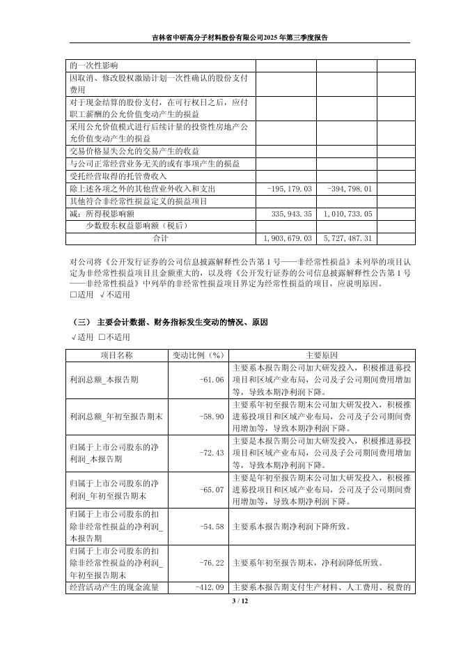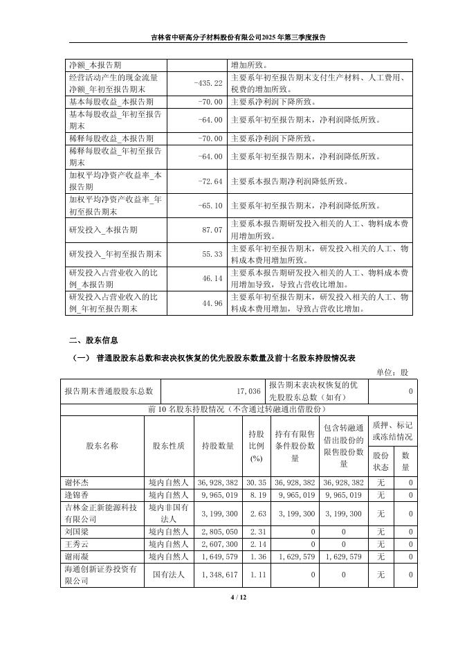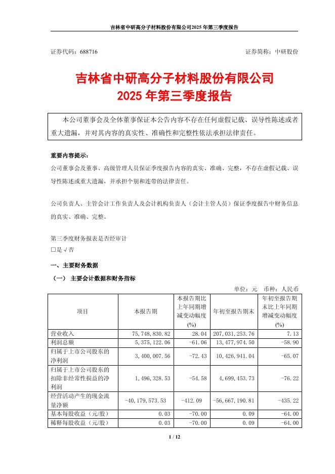 688716-中研股份:吉林省中研高分子材料股份有限公司2025年第三季度报告.pdf