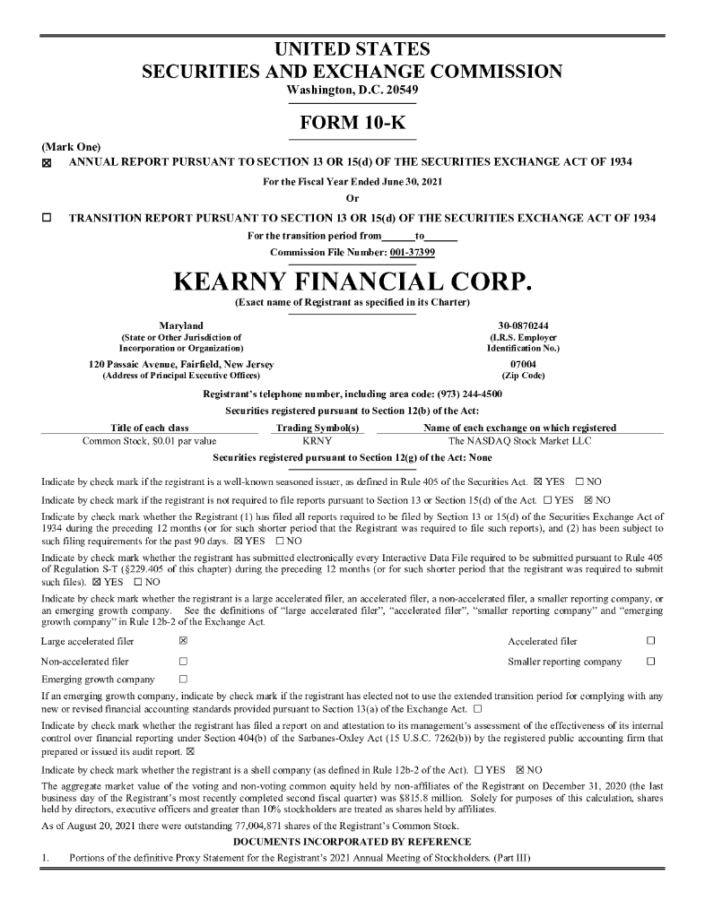 Kearny Financial Corp.(KRNY)2021财年年度报告(英文版).pdf