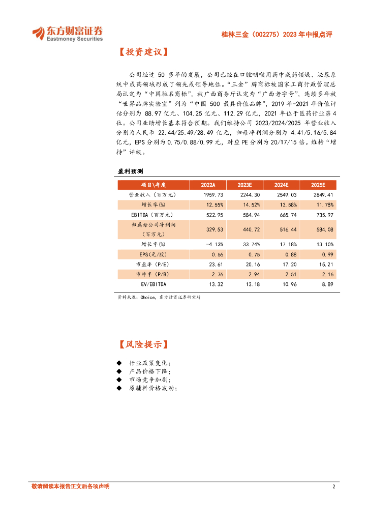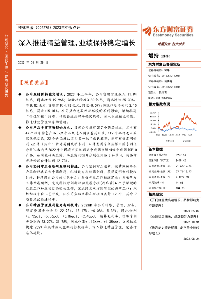 东方财富证券:桂林三金(002275)-2023年中报点评:深入推进精益管理,业绩保持稳定增长.pdf