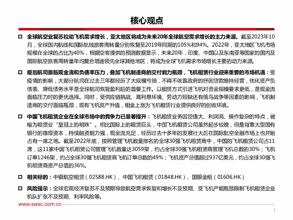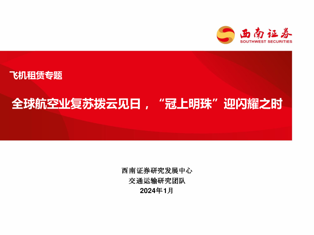 西南证券:飞机租赁专题:全球航空业复苏拨云见日,“冠上明珠”迎闪耀之时.pdf