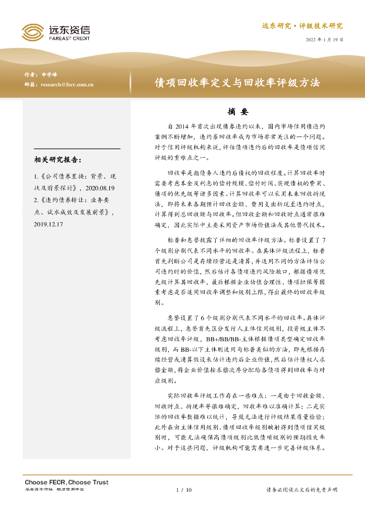 远东资信:债项回收率定义与回收率评级方法.pdf