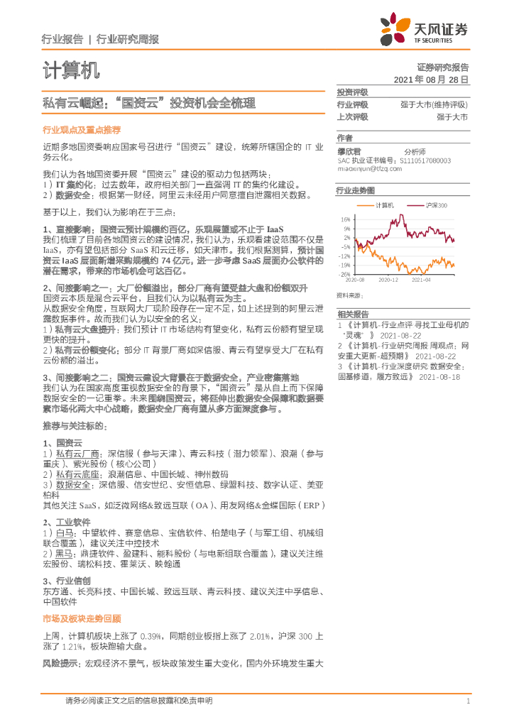 天风证券:计算机行业研究周报:私有云崛起:“国资云”投资机会全梳理.pdf