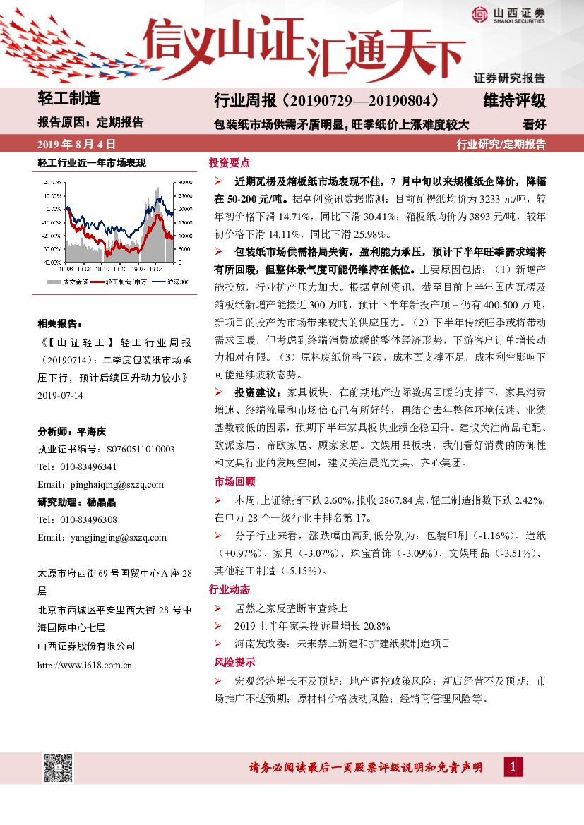 山西证券:轻工制造行业周报:包装纸市场供需矛盾明显,旺季纸价上涨难度较大.pdf