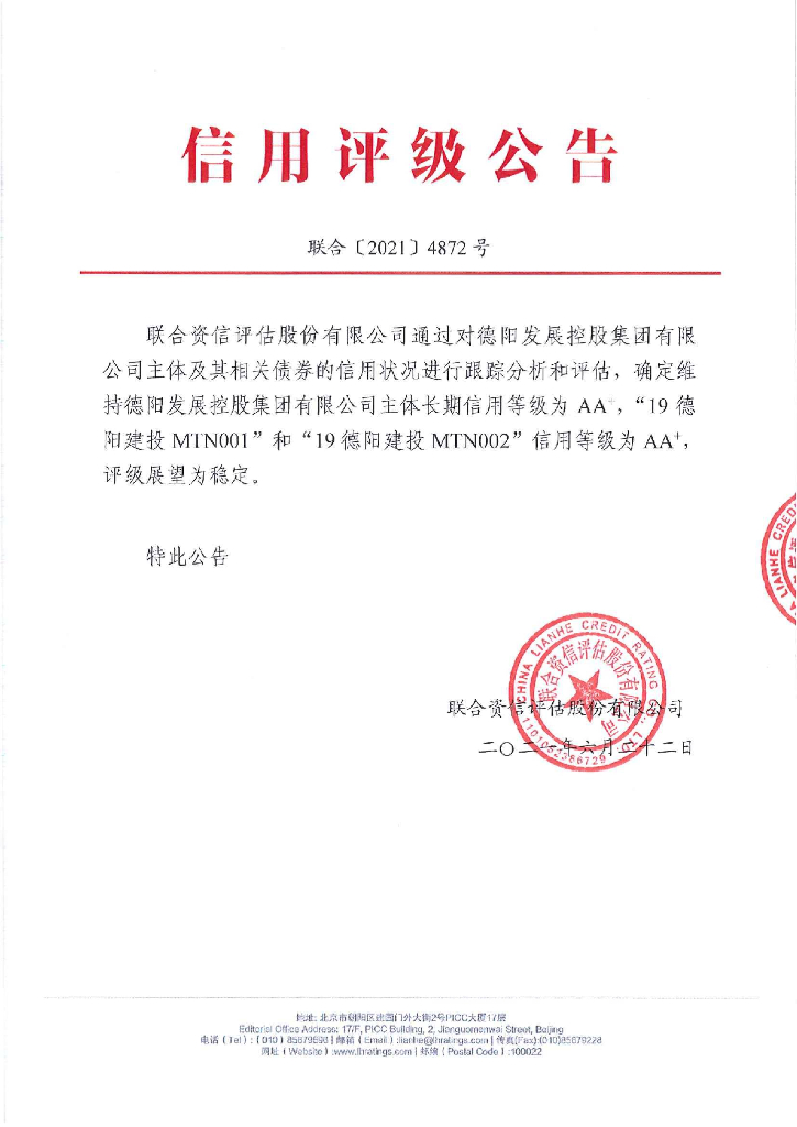 联合资信:德阳发展控股集团有限公司2021年跟踪评级报告.pdf