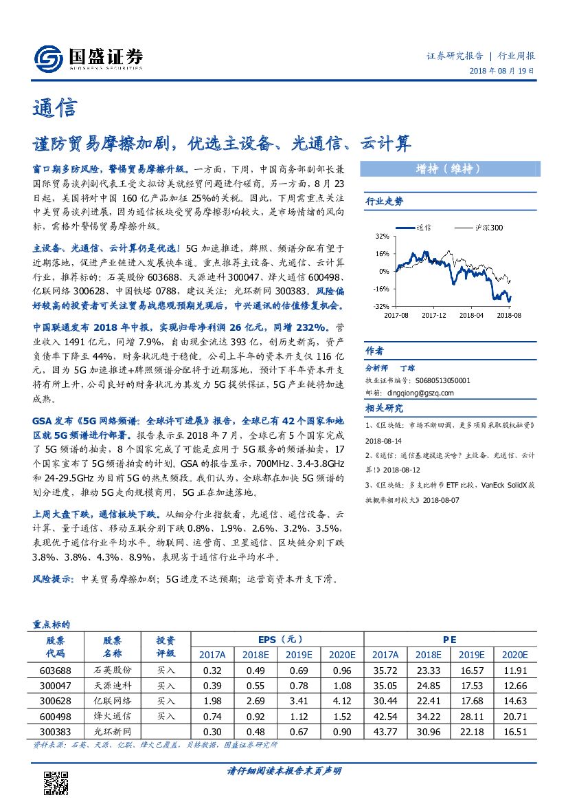 国盛证券:通信行业周报:谨防贸易摩擦加剧,优选主设备、光通信、云计算.pdf