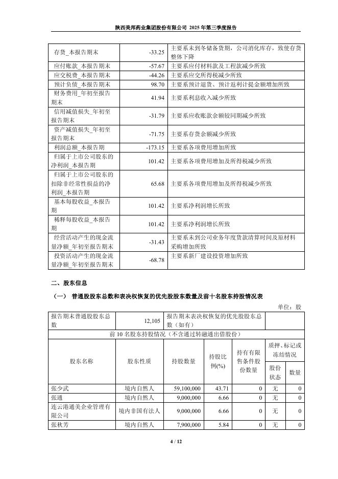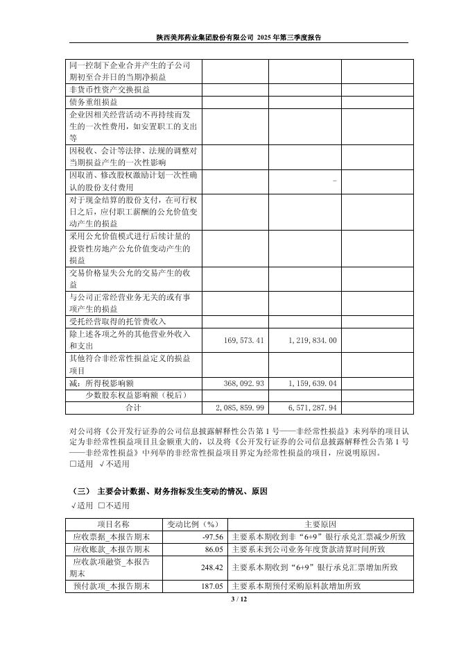 605033-美邦股份:陕西美邦药业集团股份有限公司2025年第三季度报告.pdf