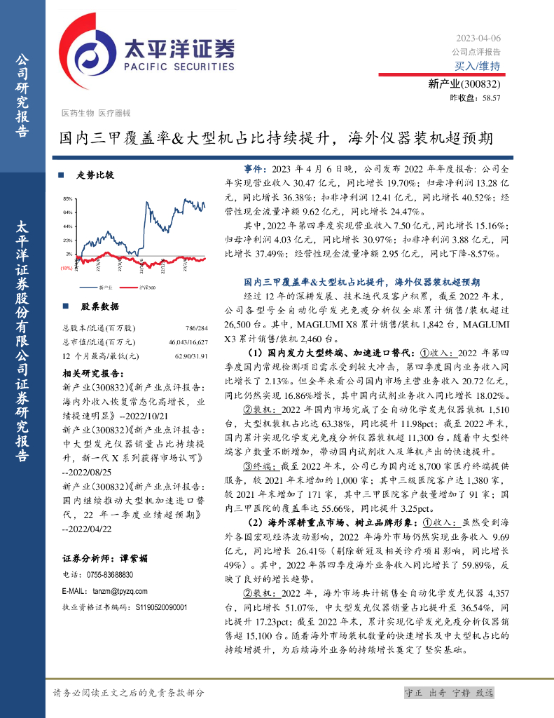 太平洋证券:新产业(300832)-国内三甲覆盖率&大型机占比持续提升,海外仪器装机超预期.pdf