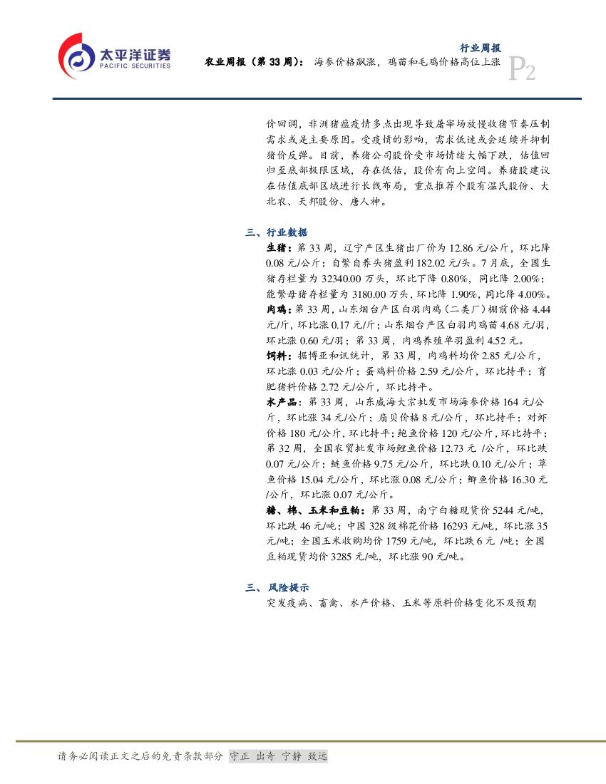 太平洋证券:农业周报(第33周):海参价格飙涨,鸡苗和毛鸡价格高位上涨.pdf