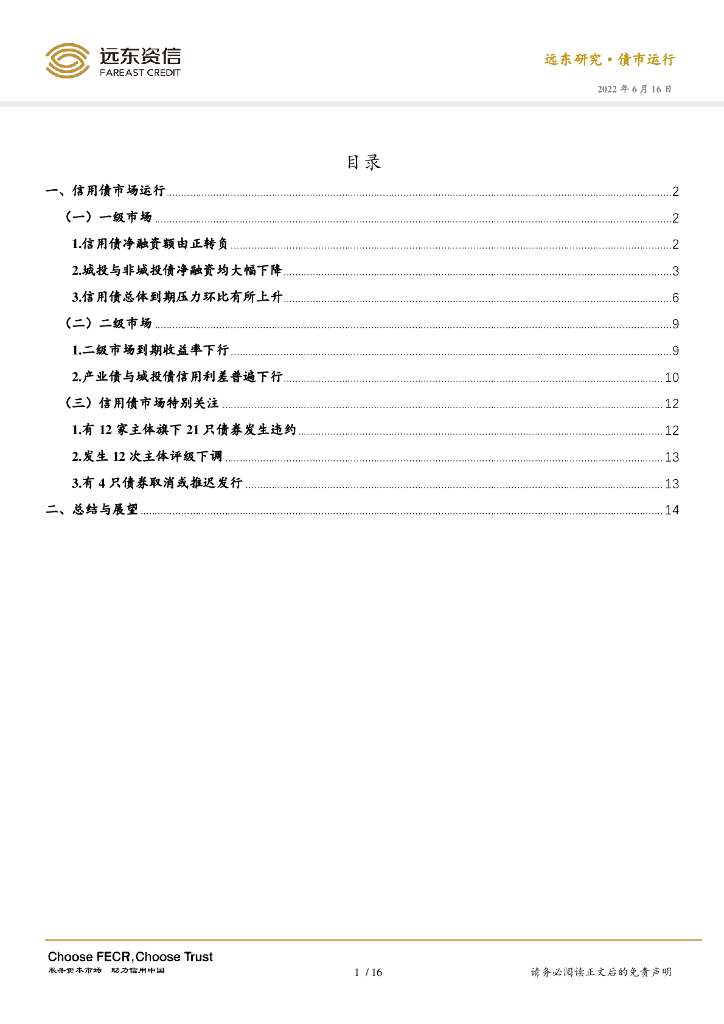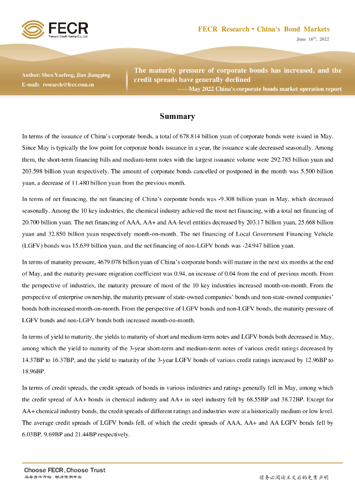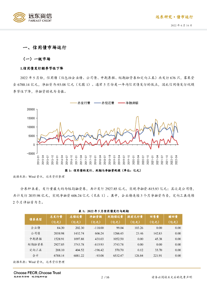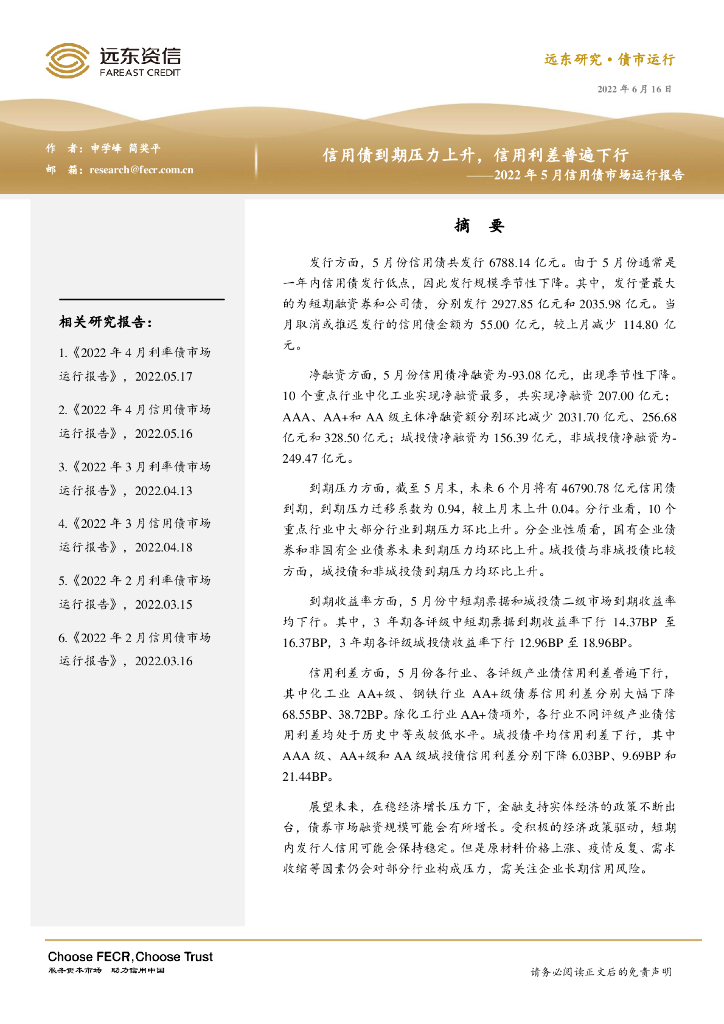 远东资信:2022年5月信用债市场运行报告:信用债到期压力上升,信用利差普遍下行.pdf
