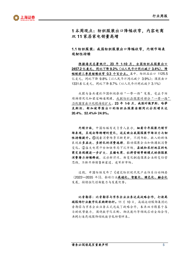 上海证券:轻工纺服行业周报:纺织服装出口降幅收窄,内容电商双11家居家电销量高增.pdf