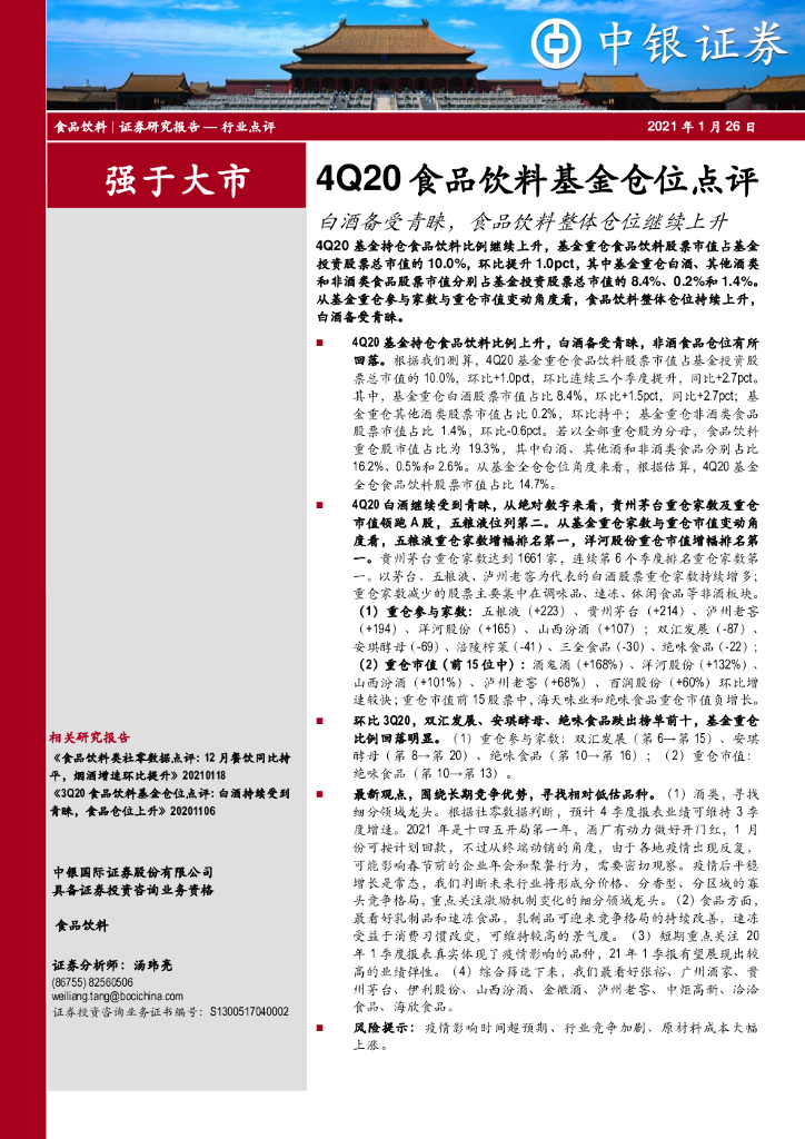 中银证券:4Q20食品饮料基金仓位点评:白酒备受青睐,食品饮料整体仓位继续上升.pdf