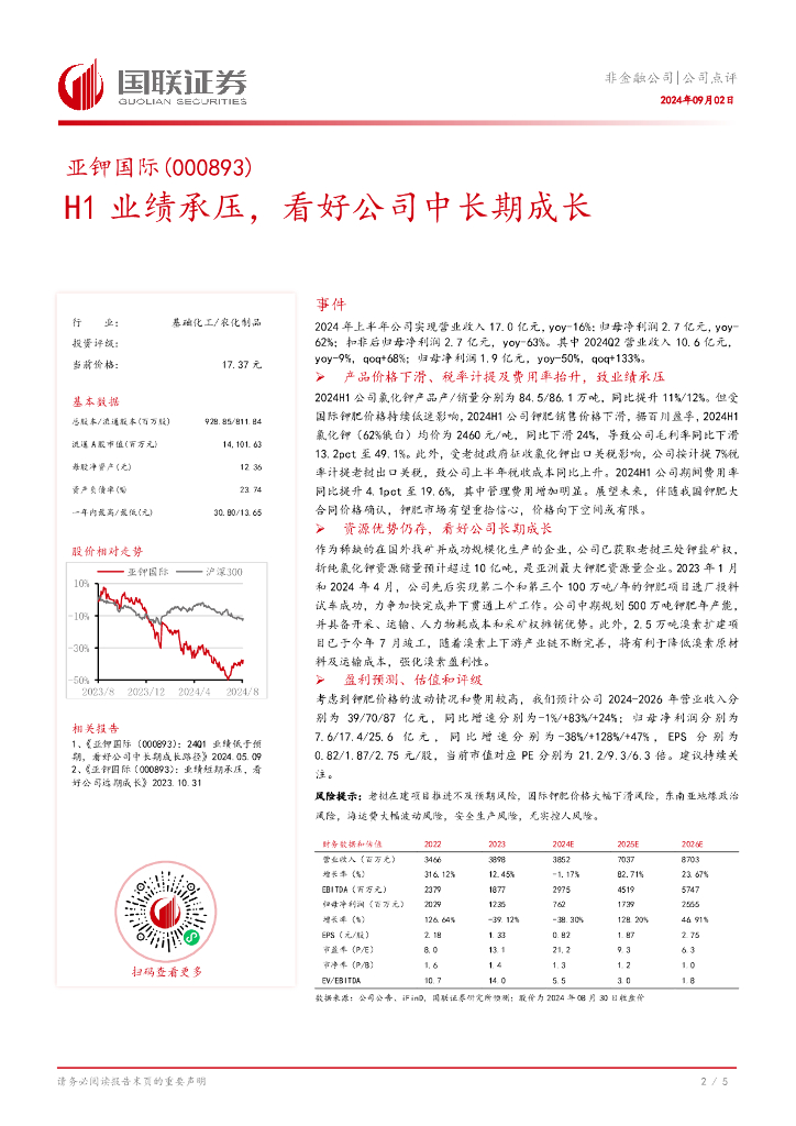 国联证券:亚钾国际(000893)-H1业绩承压,看好公司中长期成长.pdf
