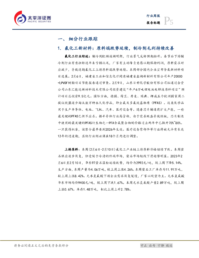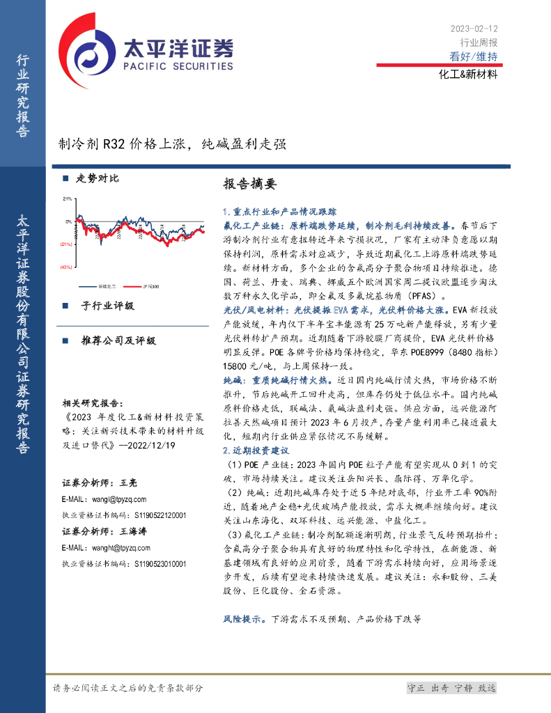 太平洋证券:化工&新材料行业周报:制冷剂R32价格上涨,纯碱盈利走强.pdf