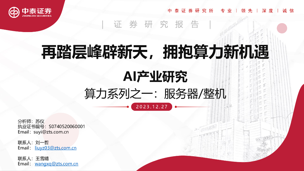 中泰证券:AI产业研究算力系列之一:服务器/整机-再踏层峰辟新天,拥抱算力新机遇.pdf