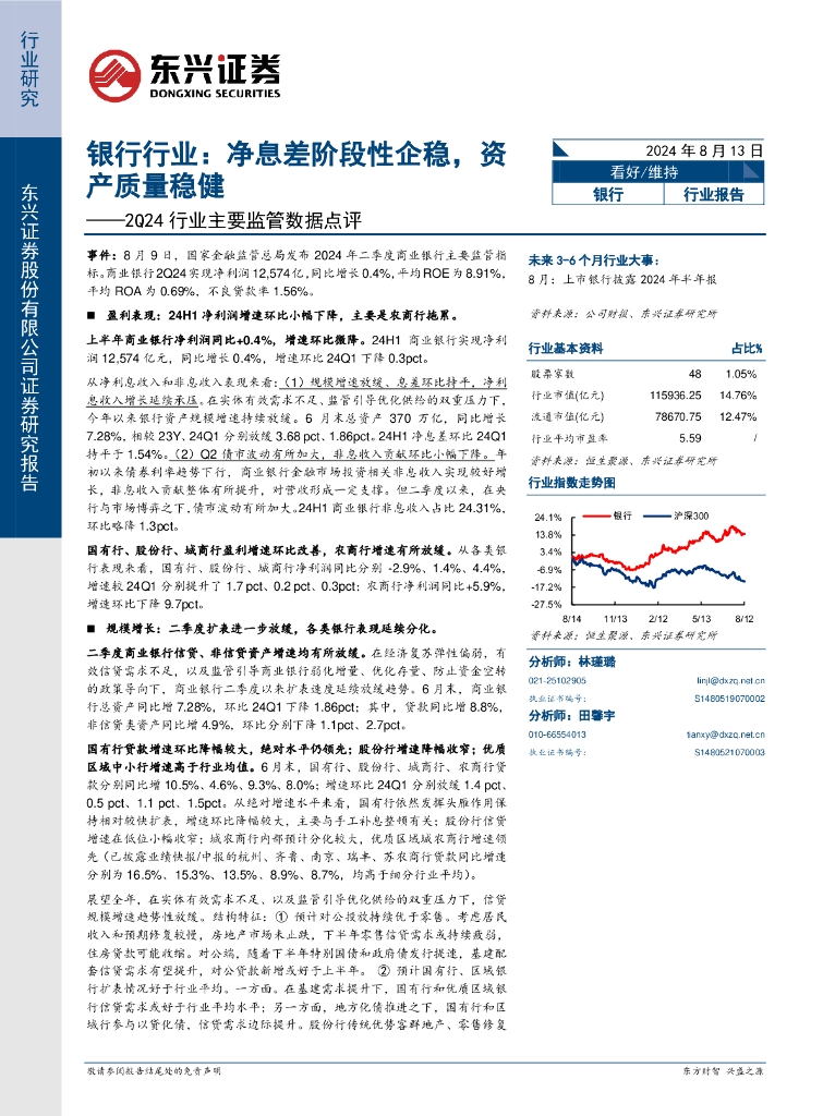 东兴证券:银行行业2Q24行业主要监管数据点评:净息差阶段性企稳,资产质量稳健.pdf