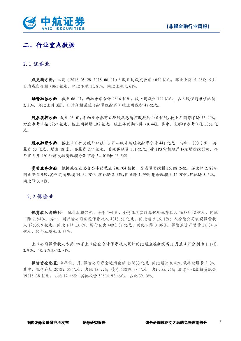 中航证券:非银金融行业周报:保费收入边际改善,券商板块低位徘徊.pdf