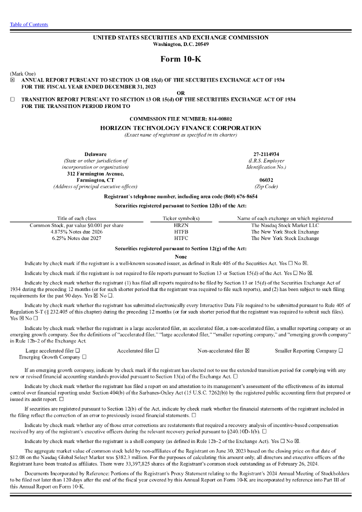 Horizon Technology Finance Corporation(HRZN)2023财年年度报告(英文版).pdf