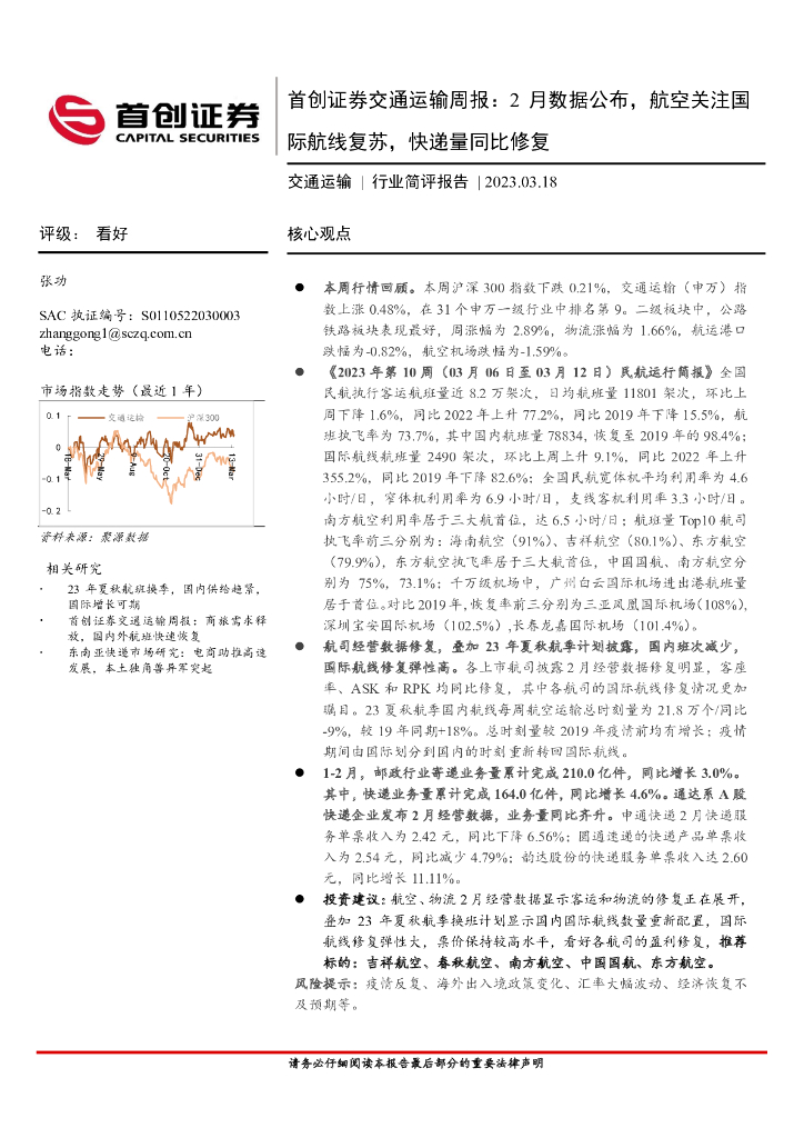 首创证券:交通运输周报:2月数据公布,航空关注国际航线复苏,快递量同比修复.pdf