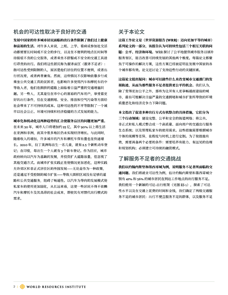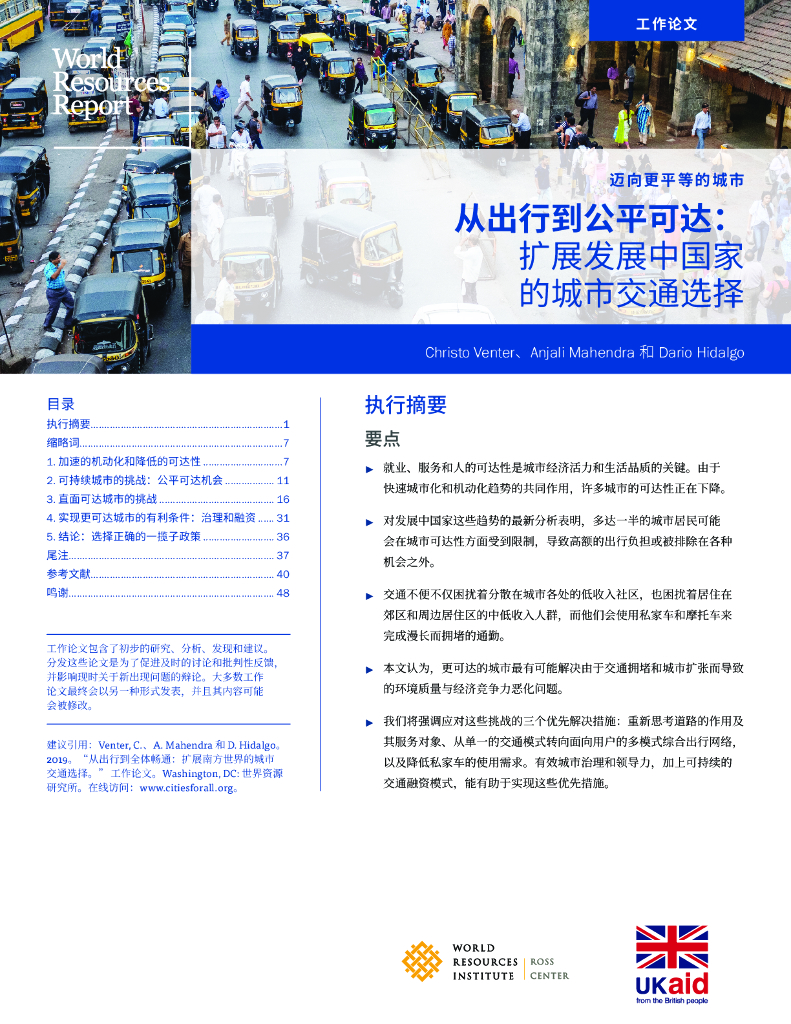 世界资源研究所:《构建更加公平的城市》从出行到公平可达:扩展发展中国家的城市交通选择.pdf