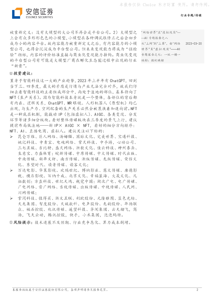 安信证券:传媒行业专题:新IP×AIGC×NFT:交互大繁荣、内容新模式、变现新空间.pdf