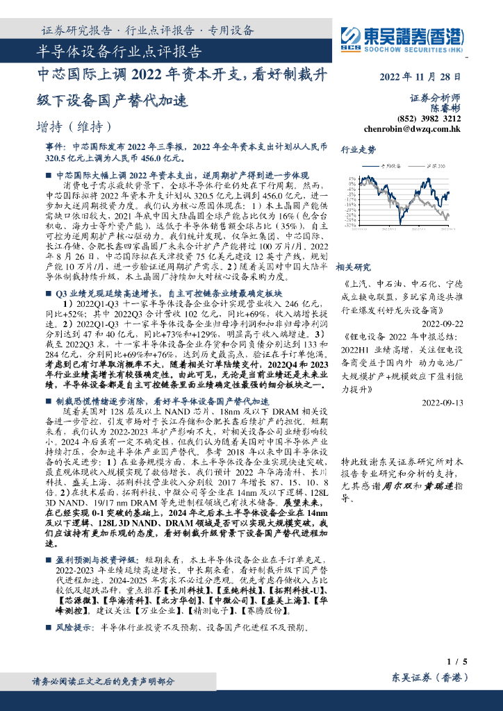 东吴证券国际经纪:半导体设备行业点评报告:中芯国际上调2022年资本开支,看好制裁升级下设备国产替代加速.pdf