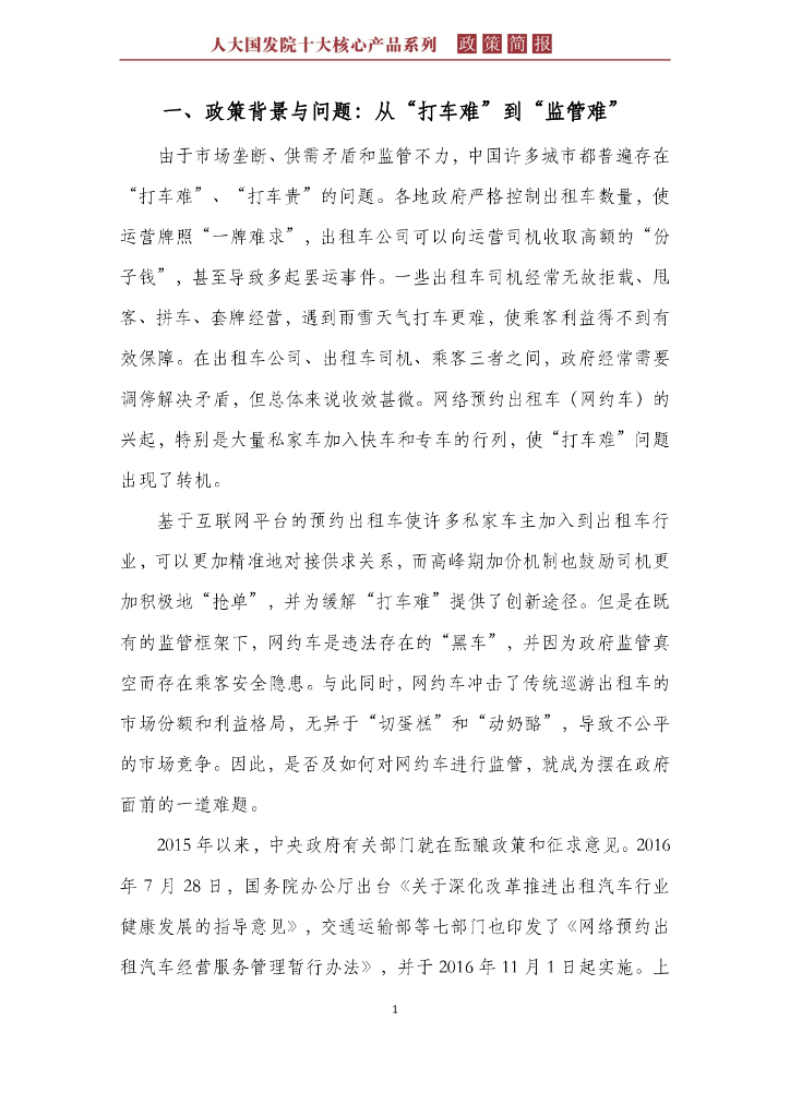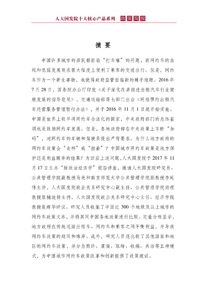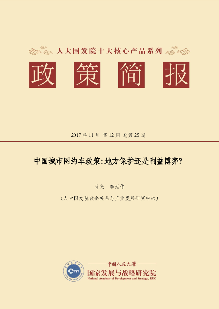 人大国发院:国发院政策简报第二十五期:中国城市网约车政策:地方保护还是利益博弈?.pdf