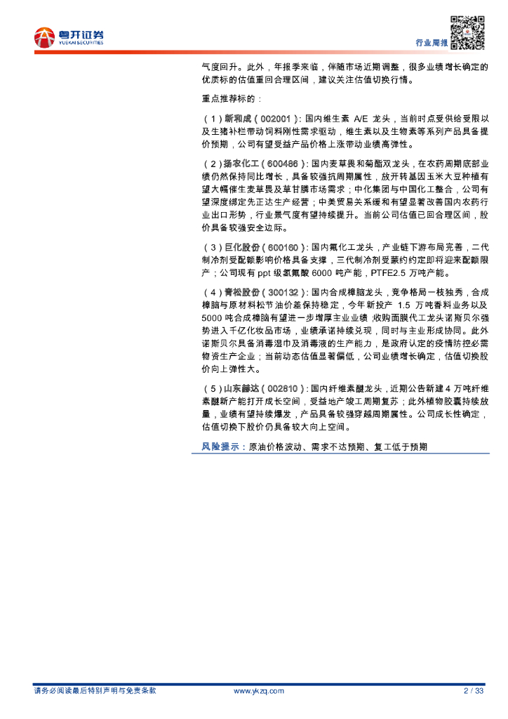 粤开证券:【粤开化工】行业周报及观点-维生素持续提价,优质公司估值重回合理区间.pdf