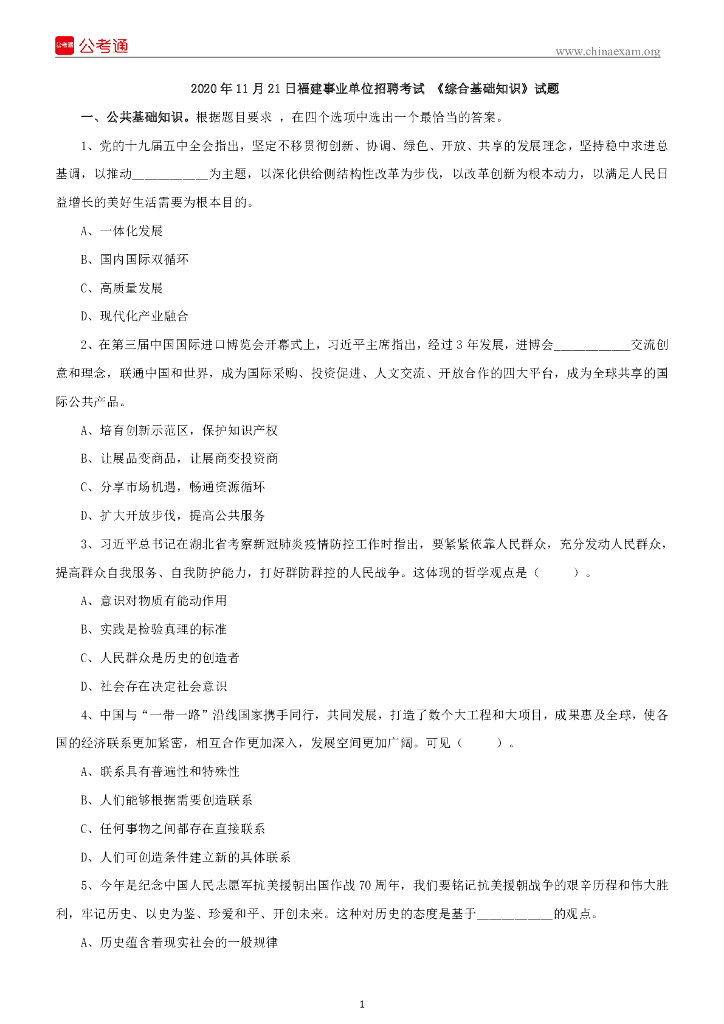 2020年11月21日福建事业单位招聘考试 《综合基础知识》试题.pdf