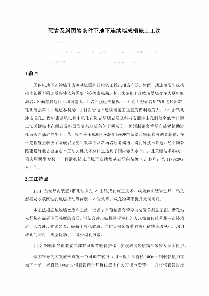 硬岩及斜面岩条件下地下连续墙成槽施工工法.pdf