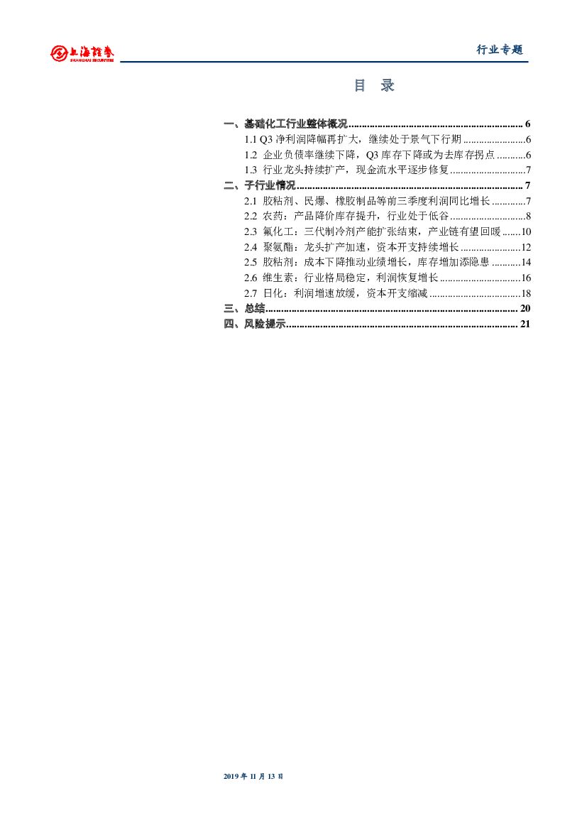 上海证券:基础化工行业2019年三季报总结:行业继续筑底,去库存周期或将开启.pdf