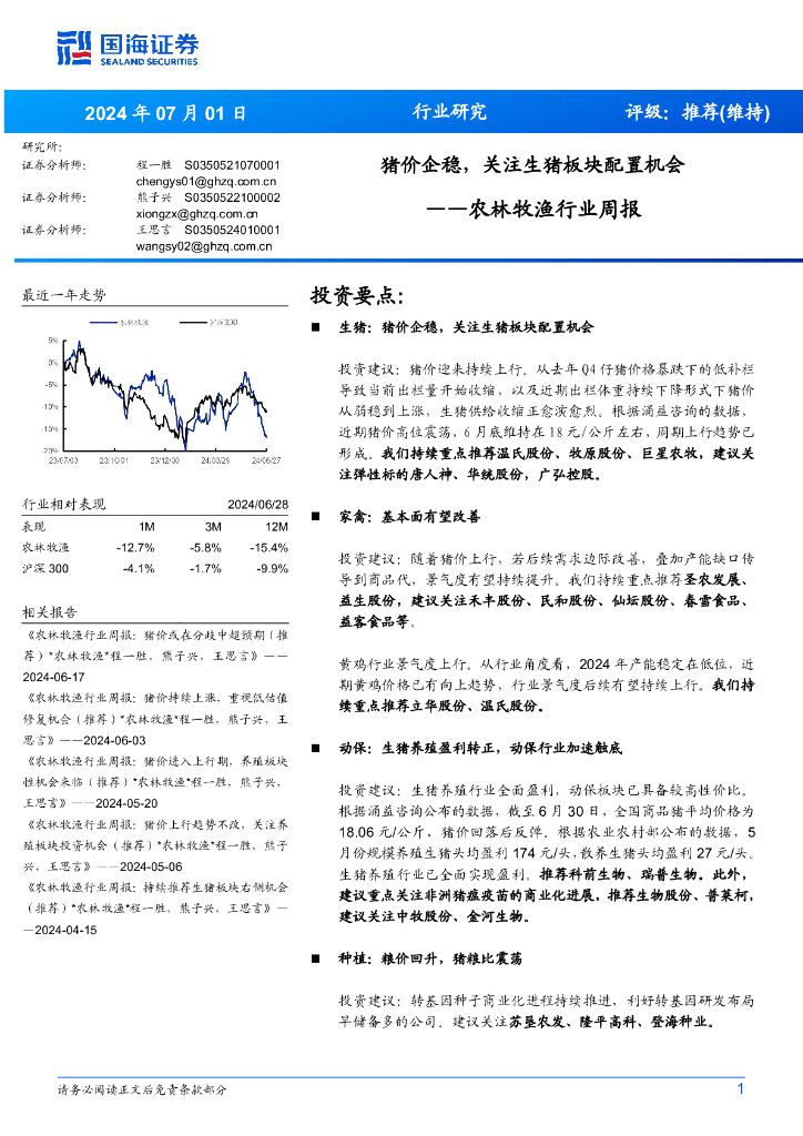 国海证券:农林牧渔行业周报:猪价企稳,关注生猪板块配置机会.pdf