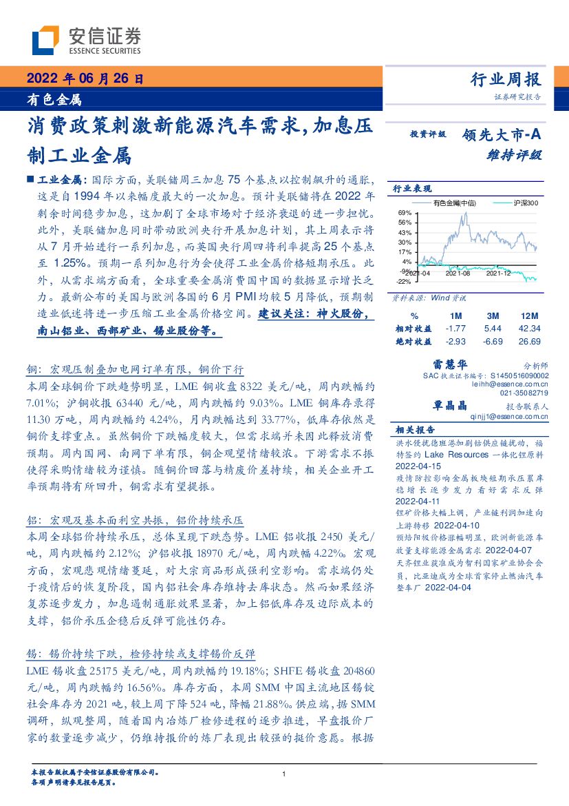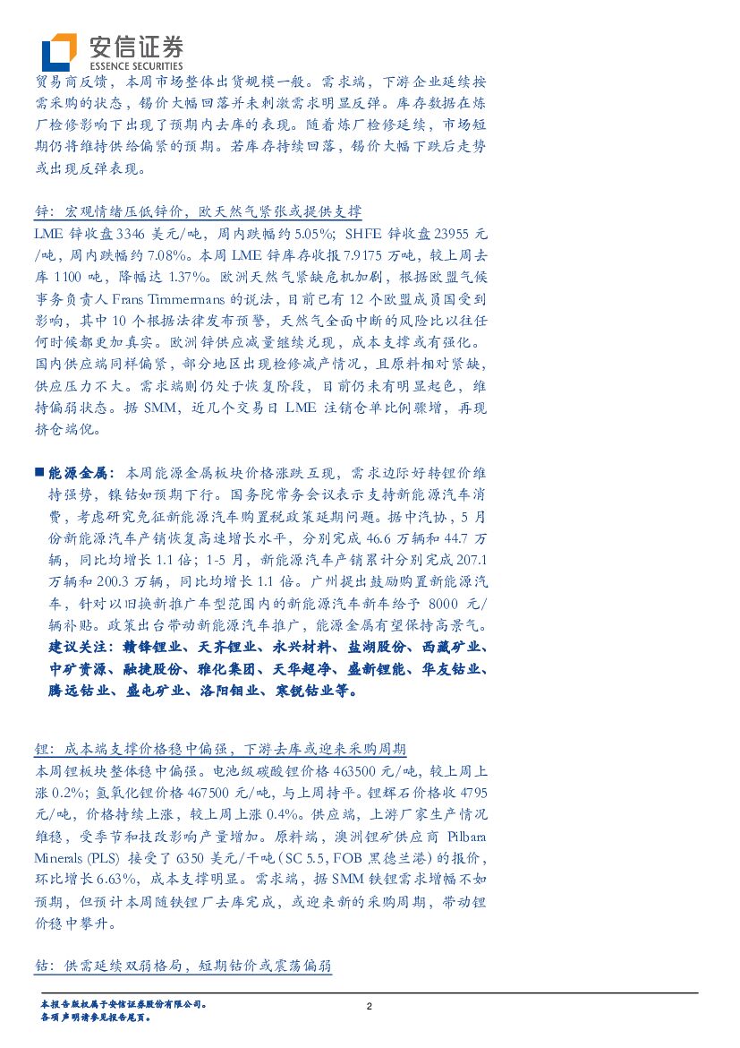 安信证券:有色金属行业周报:消费政策刺激新能源汽车需求,加息压制工业金属.pdf