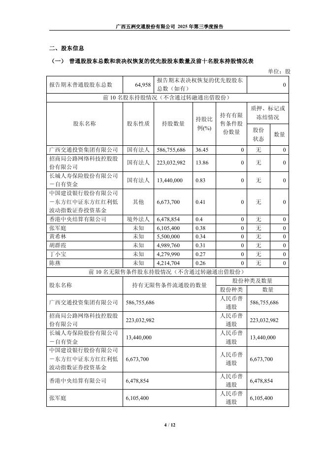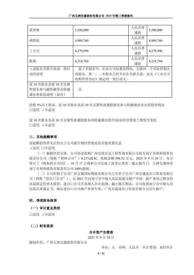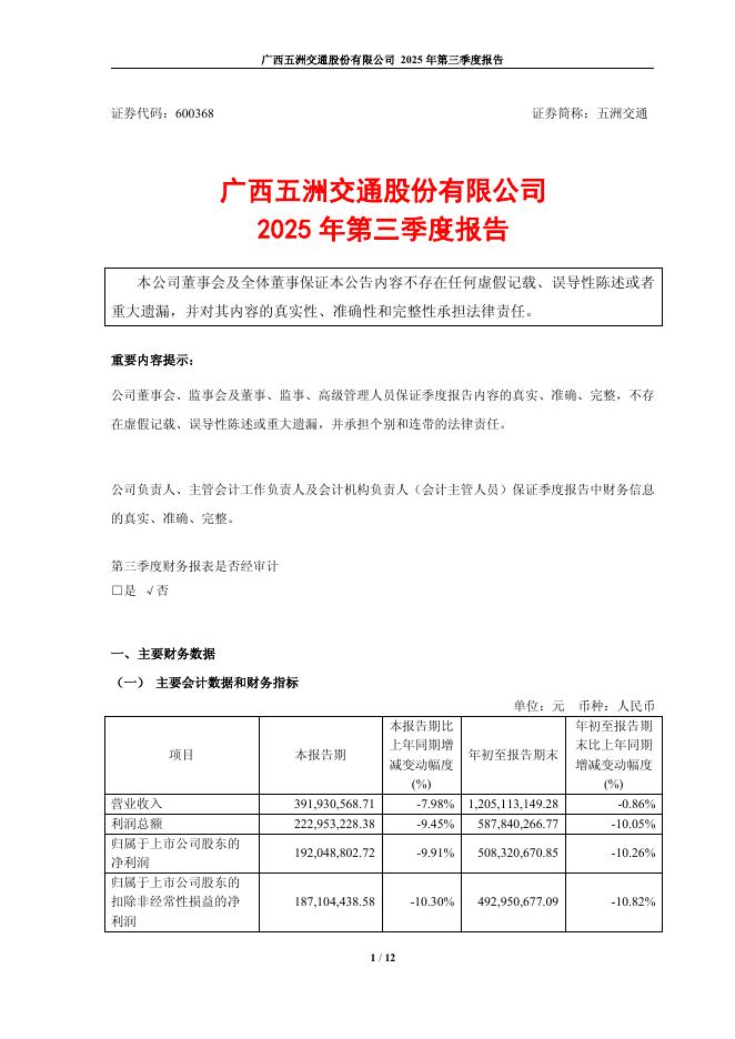 600368-五洲交通:广西五洲交通股份有限公司2025年第三季度报告.pdf
