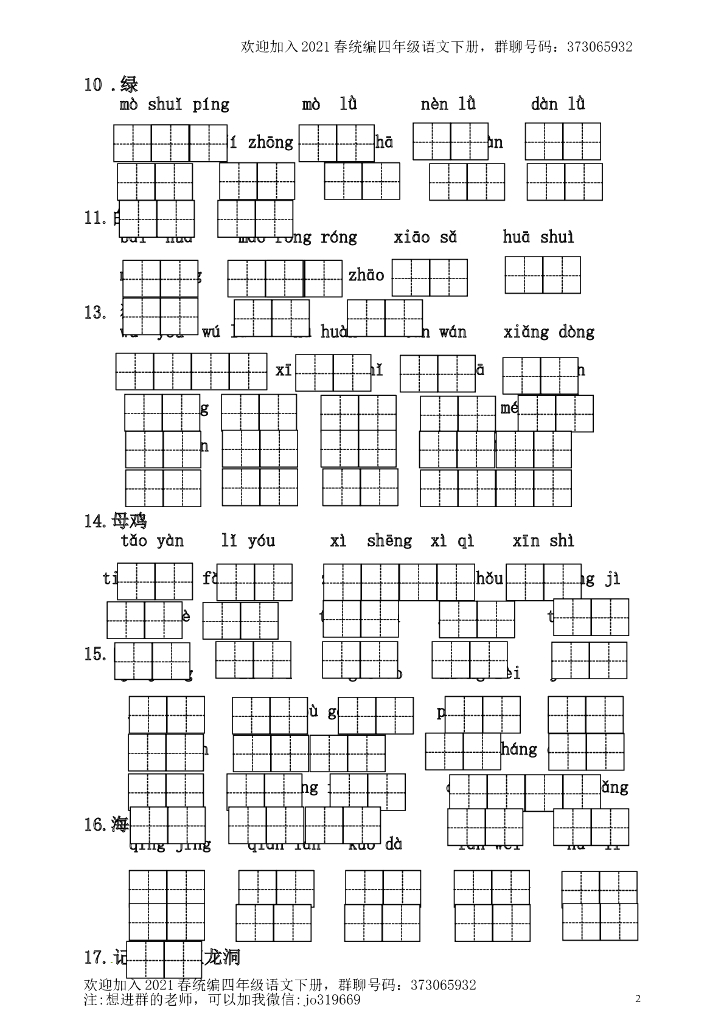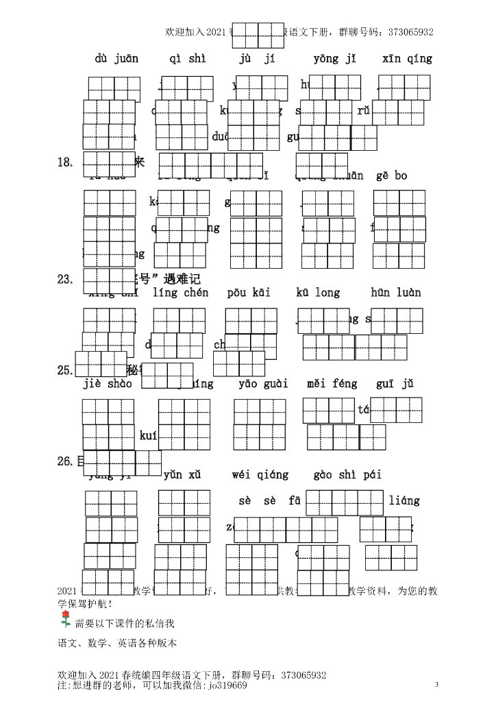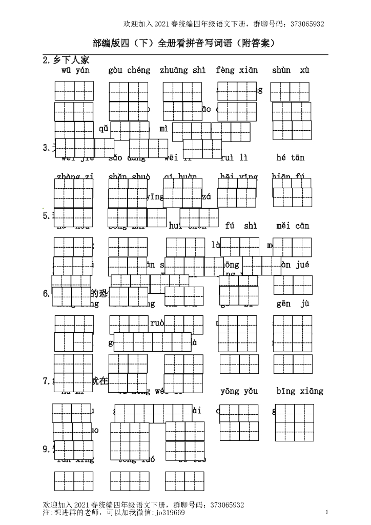 部编版四(下)全册看拼音写词语(附答案).doc