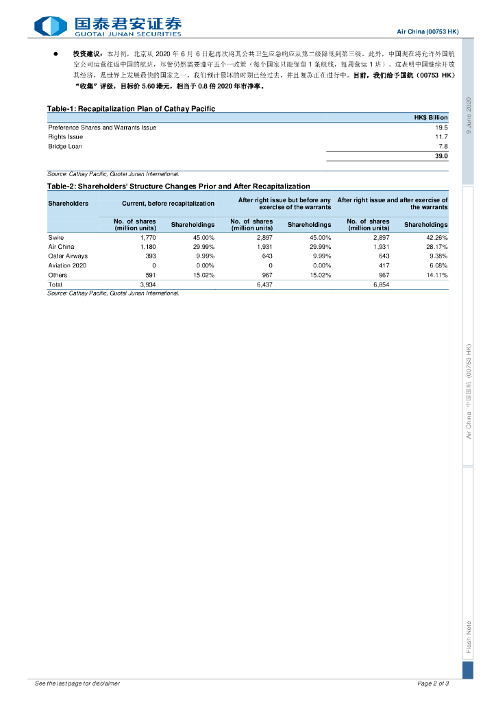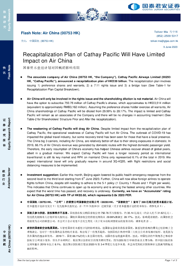 国泰君安证券(香港):中国国航(00753)港股公司研究报告-国泰资本重组计划对国航的影响有限.pdf