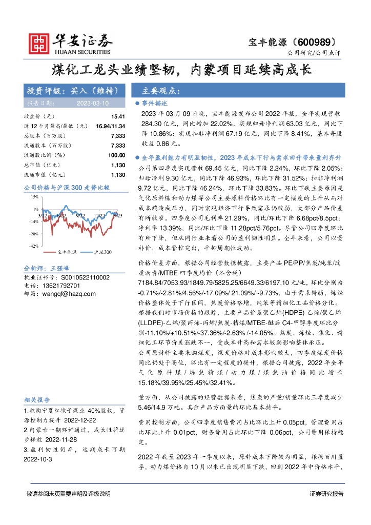 华安证券:宝丰能源(600989)-煤化工龙头业绩坚韧,内蒙项目延续高成长.pdf
