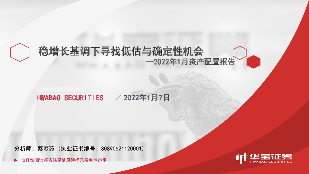 华宝证券:2022年1月资产配置报告:稳增长基调下寻找低估与确定性机会.pdf