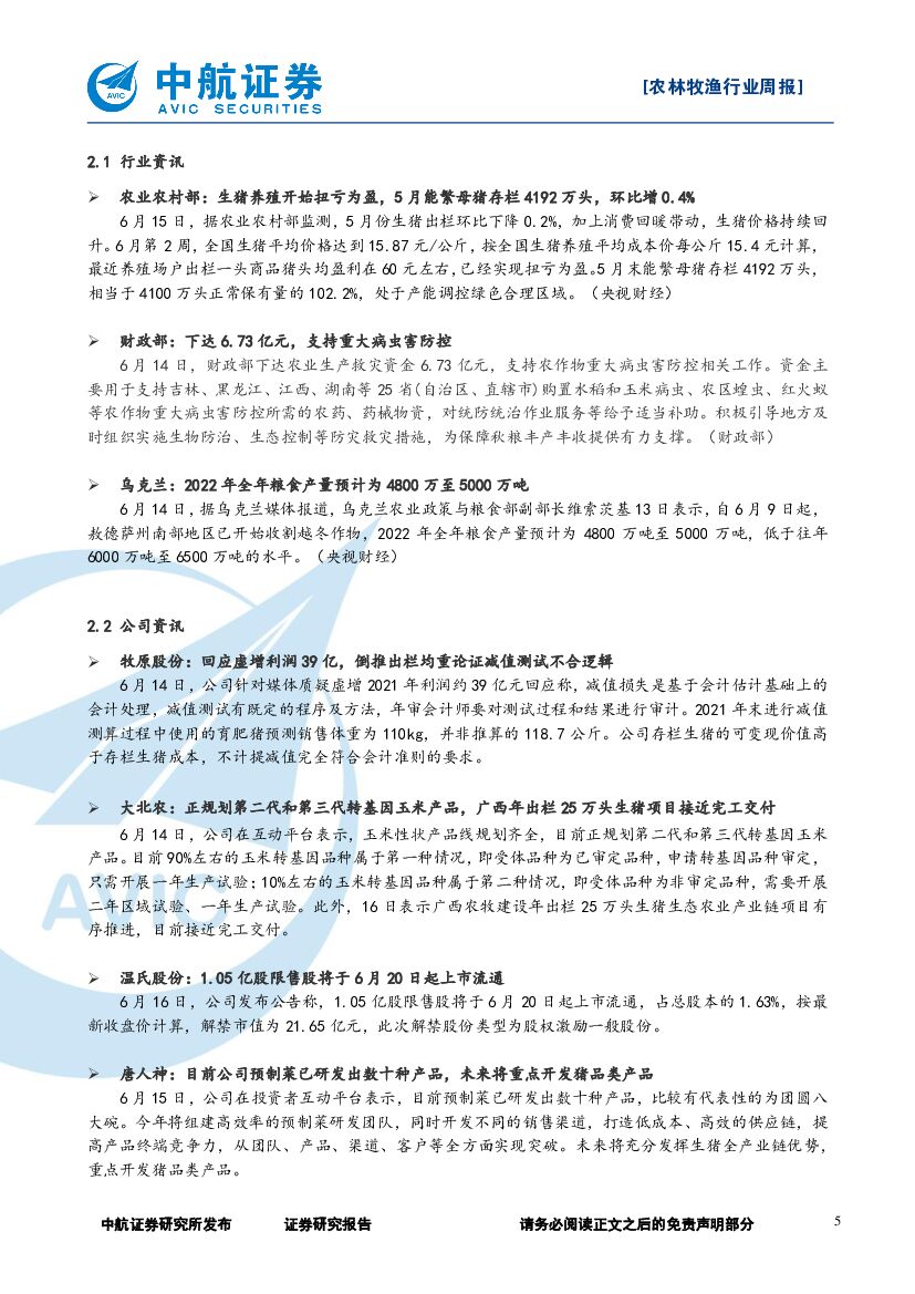 中航证券:农林牧渔行业周报:珍惜生猪周期磨底区间,建议积极布局.pdf