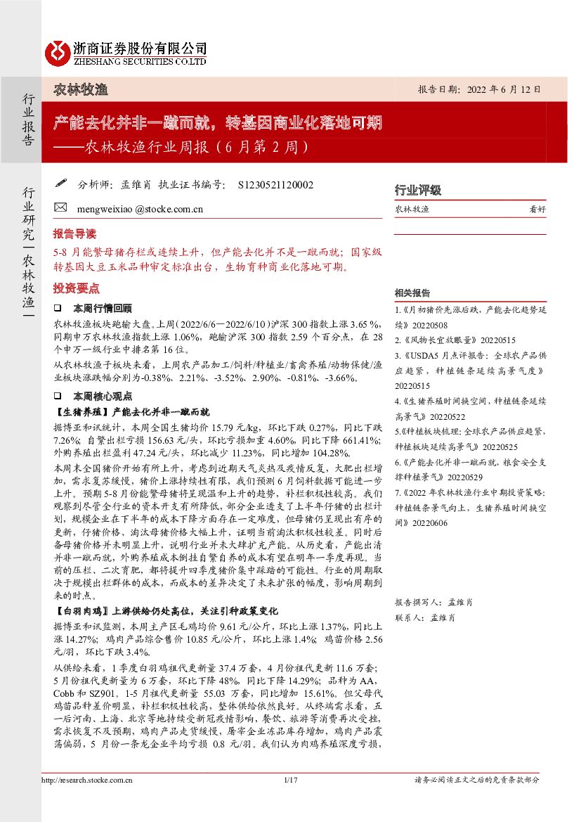 浙商证券:农林牧渔行业周报(6月第2周):产能去化并非一蹴而就,转基因商业化落地可期.pdf