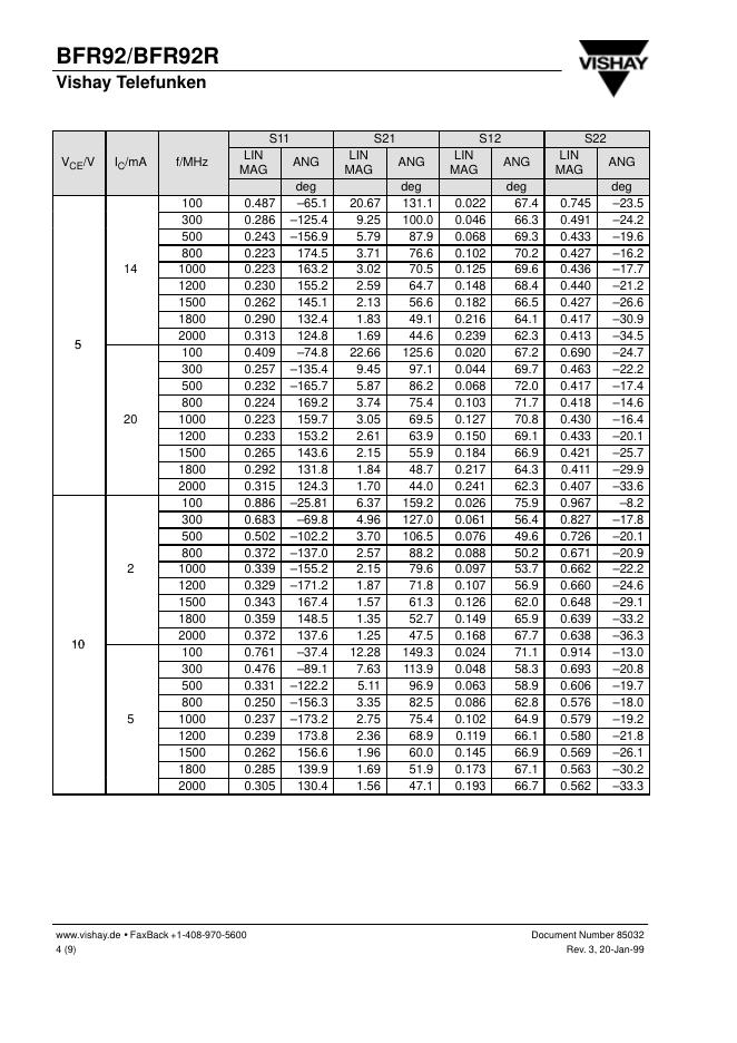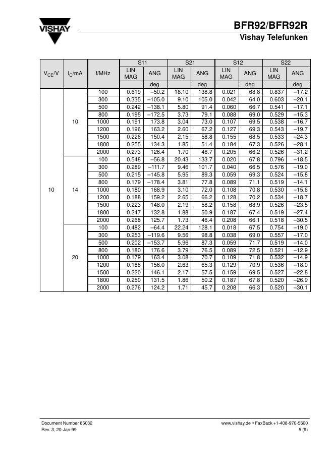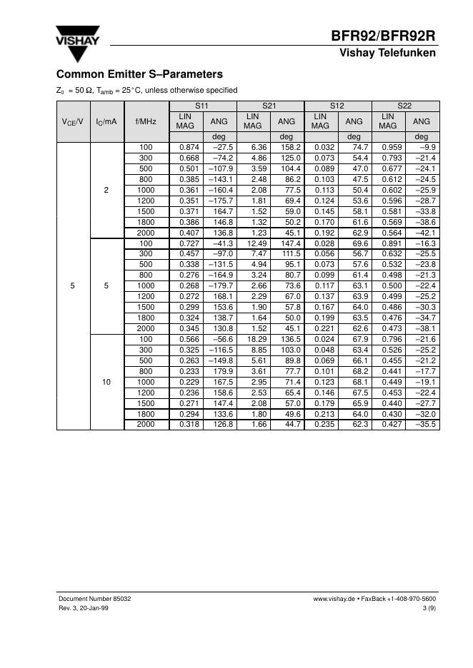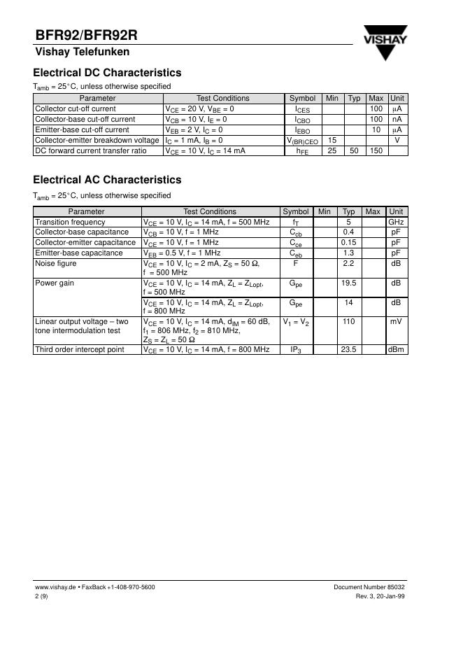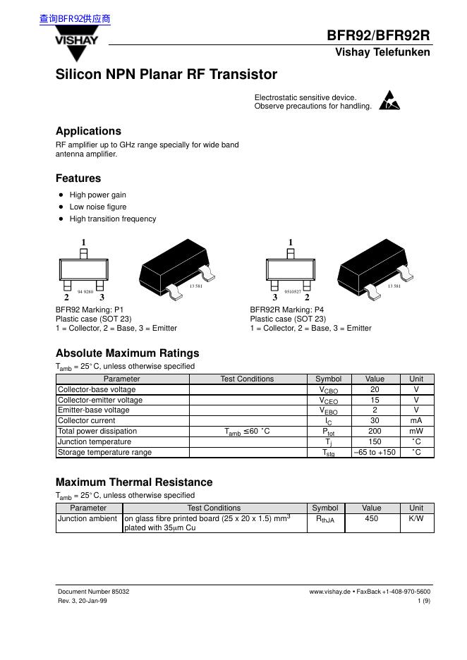 VISHAY BFR92/BFR92R 数据手册.pdf