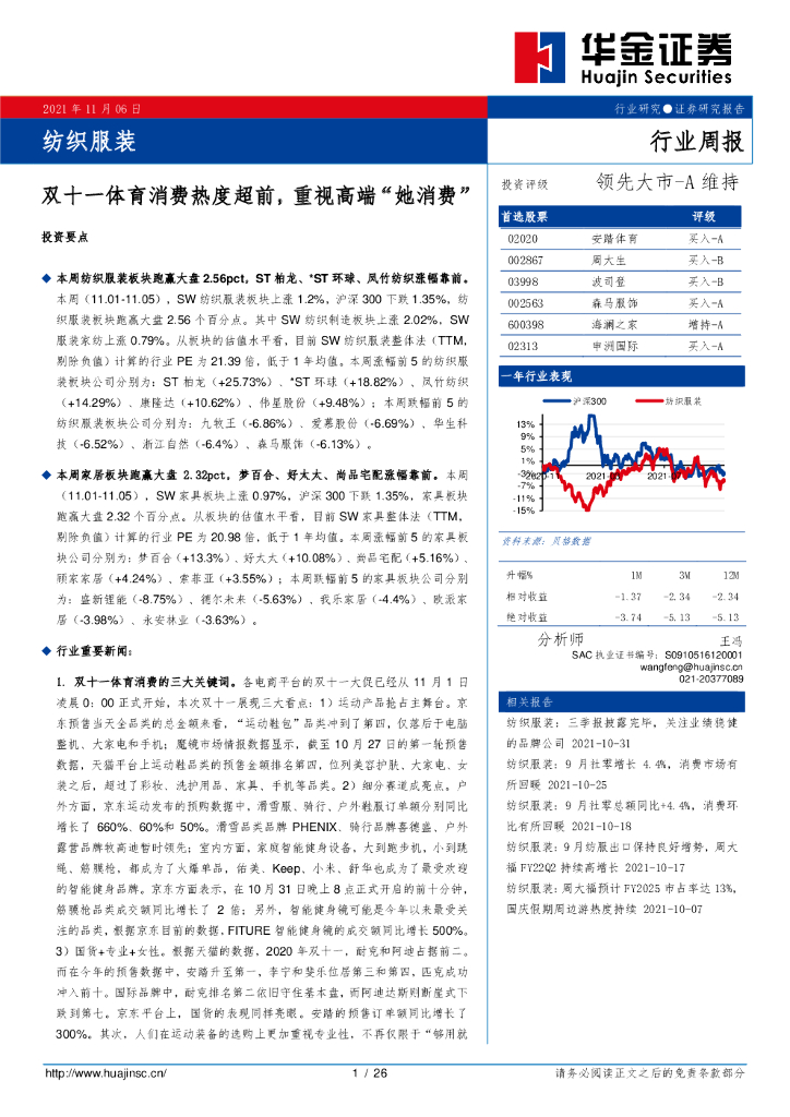 华金证券:纺织服装行业周报:双十一体育消费热度超前,重视高端“她消费”.pdf