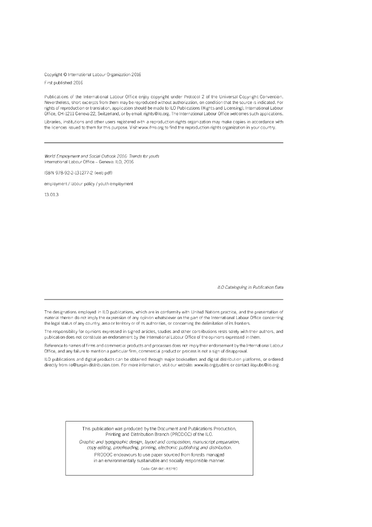 国际劳工组织(ILO):2016年世界就业和社会展望报告:青年趋势(英文版).pdf