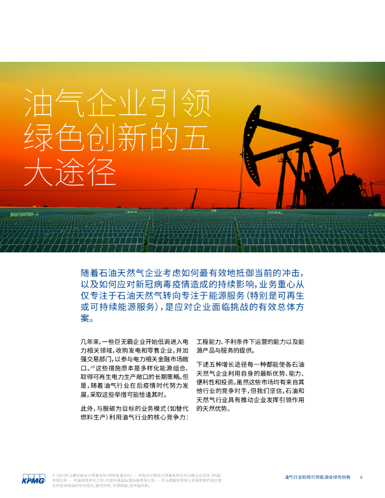 毕马威:碳中和时代油气行业转型的五大优势:油气行业如何引领能源业绿色创新.pdf