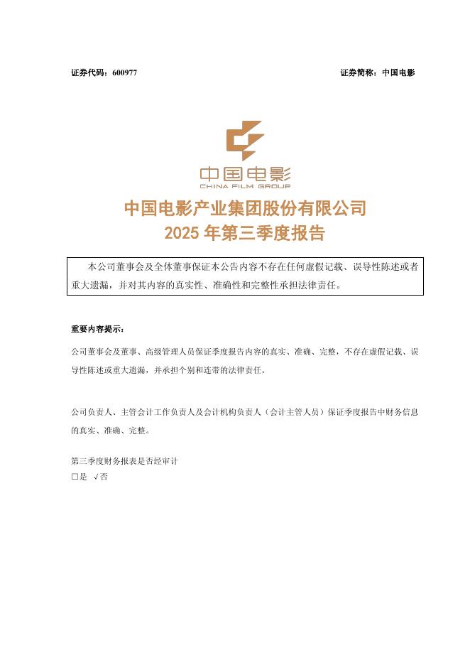 600977-中国电影:中国电影2025年第三季度报告.pdf