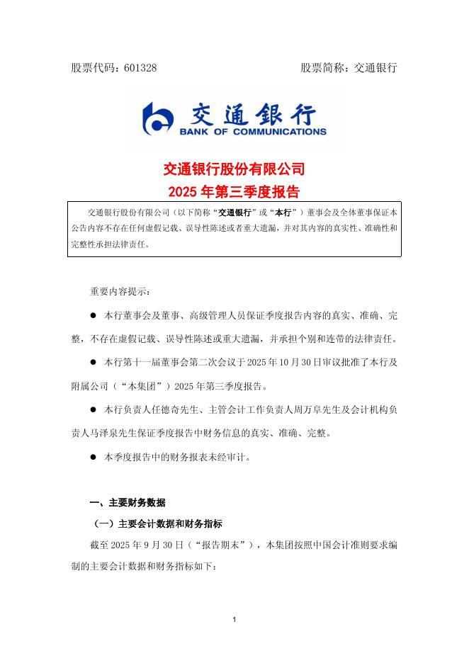 601328-交通银行:交通银行2025年第三季度报告.pdf