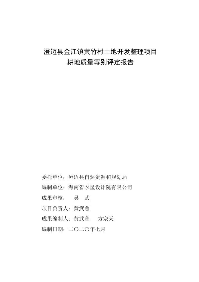 澄迈县金江镇黄竹村土地开发整理项目耕地质量等级评定报告.pdf