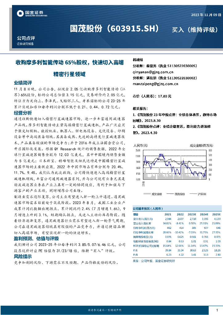 国金证券:国茂股份(603915)-收购摩多利智能传动65%股权,快速切入高端精密行星领域.pdf