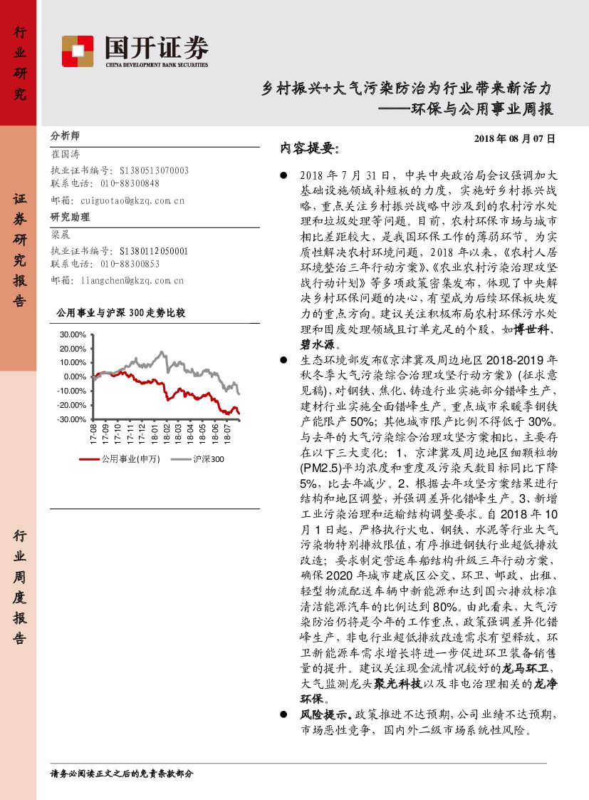 国开证券:环保与公用事业周报:乡村振兴+大气污染防治为行业带来新活力.pdf