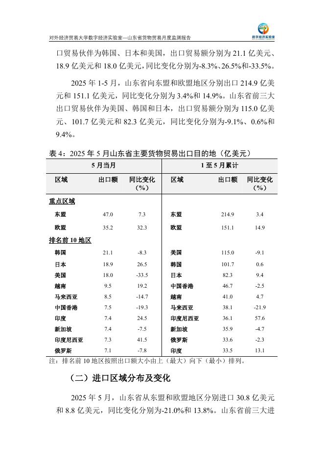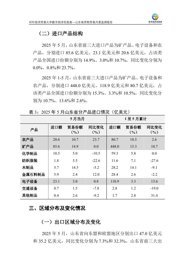 对外经济贸易大学:山东省货物贸易月度监测报告(2025年1-5月).pdf
