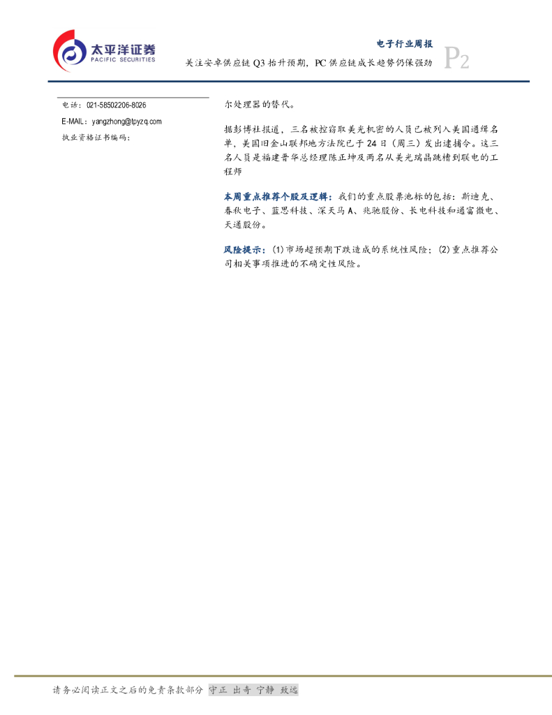 太平洋证券:电子设备、仪器和元件行业周报:关注安卓供应链Q3抬升预期,PC供应链成长趋势仍保强劲.pdf